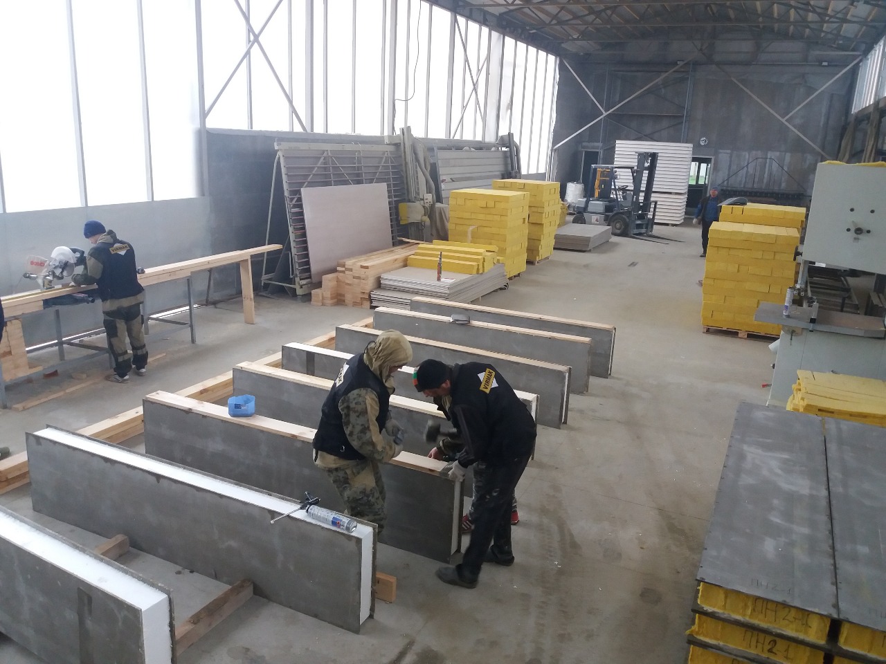 Суммарный объем производства СИП панелей на двух технологических линиях составляет 900- 1200 м2 СИП панелей в одну восьмичасовую рабочую смену. Это фантастический показатель!