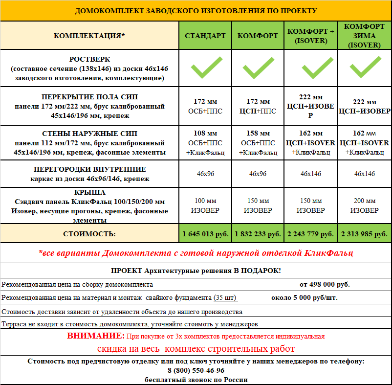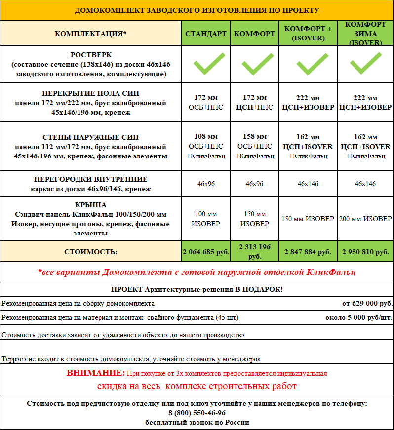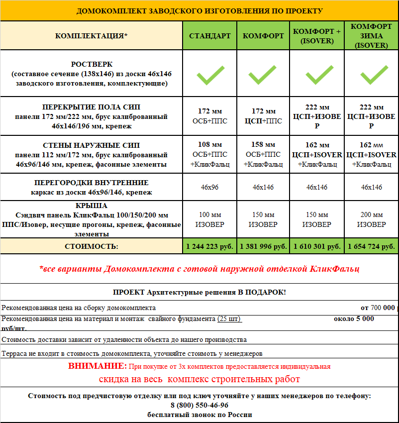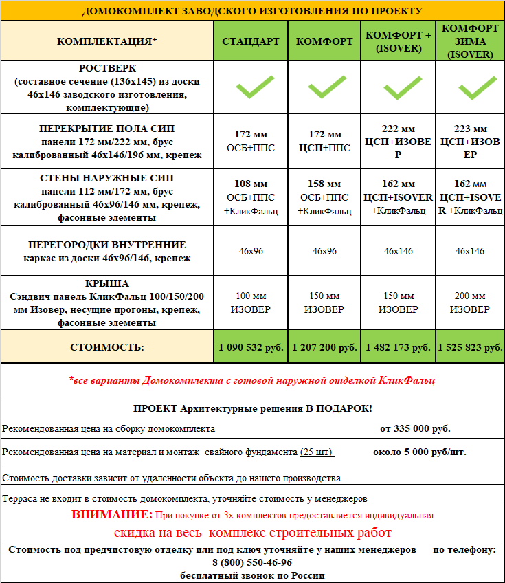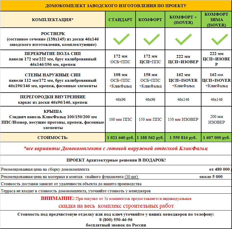 Стоимость комплекта дома всего 22 000 руб./м²