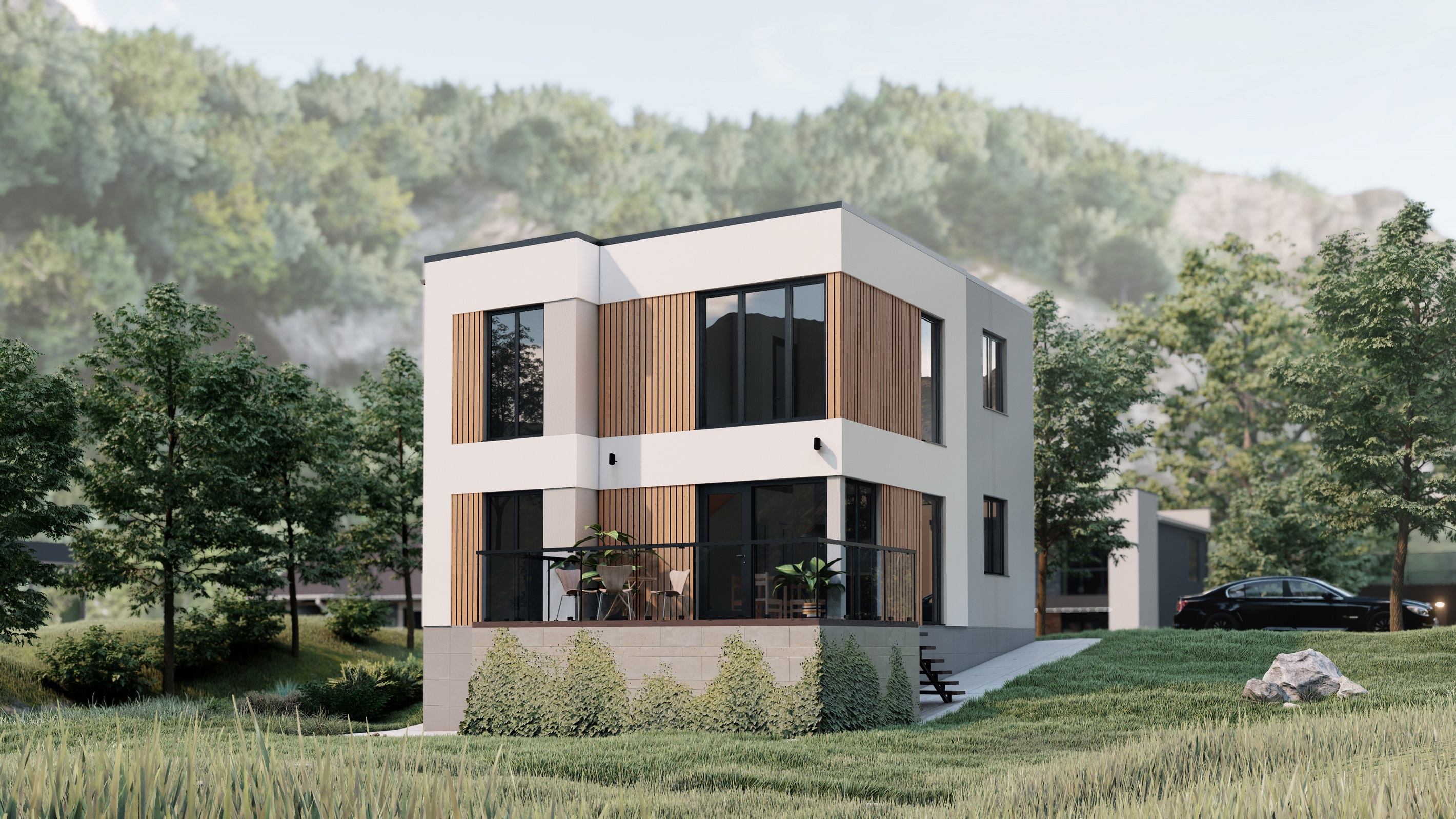 Несущий каркас с наружной обшивкой листами ОСБ, ЦСП или Гринборд и наружной отделкой системой СФТК, как и в комплектации №1, плюс утепление каркаса с защитой изнутри пароизоляцией и фиксацией рейкой, для удобства разводки коммуникаций в конструкции стены под листовым материалом. Преимущества данной комплектации: - Все вышеперечисоленные в комплектации 1 и 2, а также каркасы наружных стены уже утеплены и изолированы от внешних факторов, монтажной рейкой, которая фиксирует пароизоляционную пленку, позволяет выполнить скрытый монтаж инженерных коммуникаций под листовым отделочным материалом, не прибегая к штроблению, и исключает возможность ошибки не верного расположения розеток и выключателей, а также сокращает сроки проектирования.