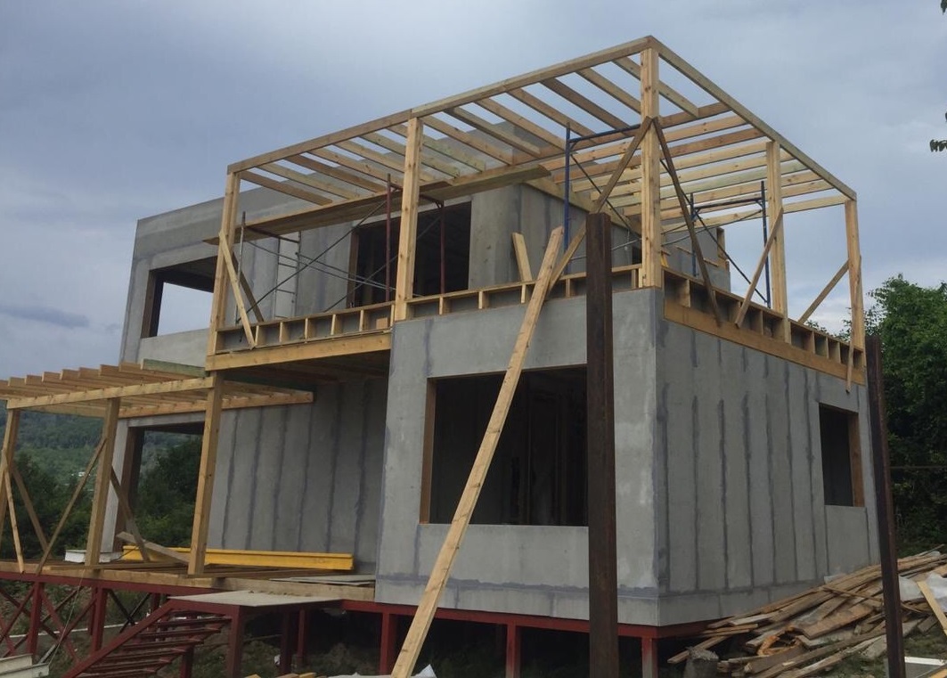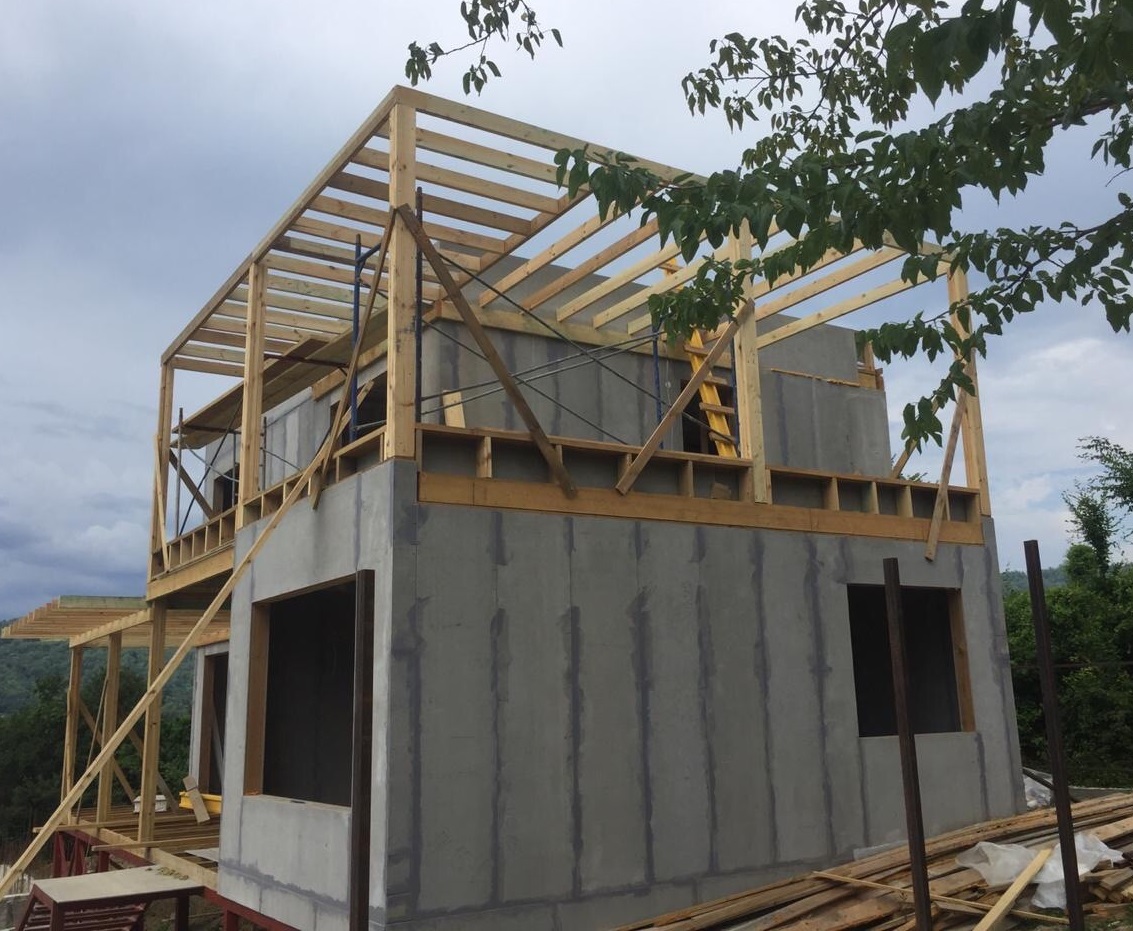 Кровля может быть построена из бруса 150х50мм или SIP панелей. В качестве кровельного материала можно использовать: металлочерепицу, битумную и керамическую черепицу. Также производим кровельные шовные сэндвич-панели.