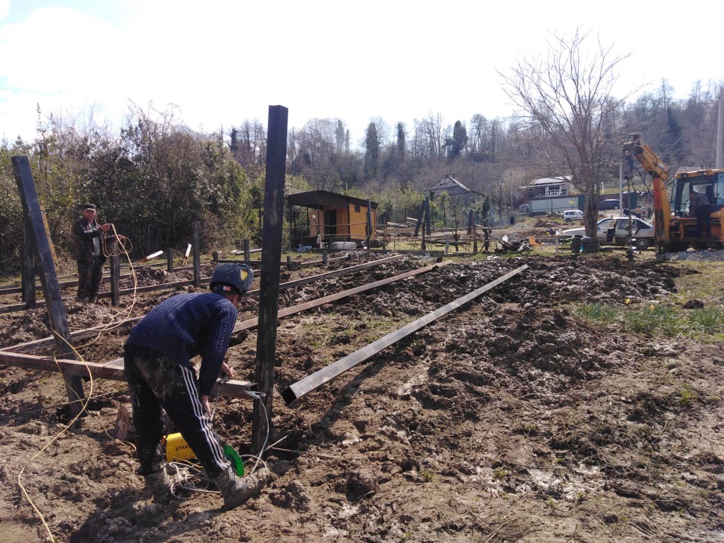 Ростверк изготовлен из калиброванного клееного бруса и защищен снаружи цементно-стружечной плитой