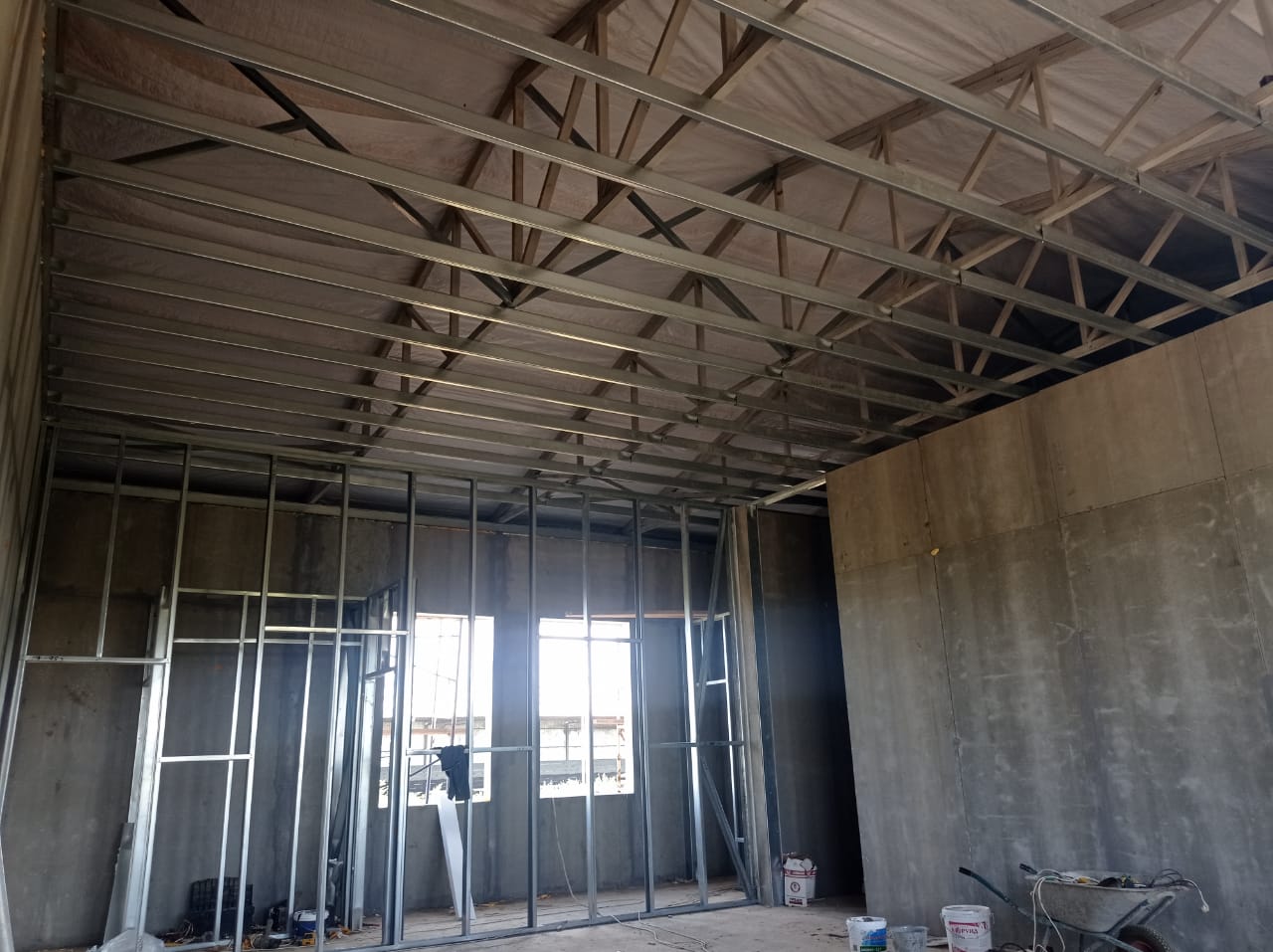 Потолок состоит из двутавровых балок 250 мм, а шаг монтажа балок - 600 мм.