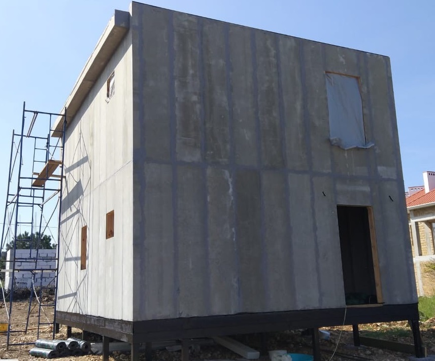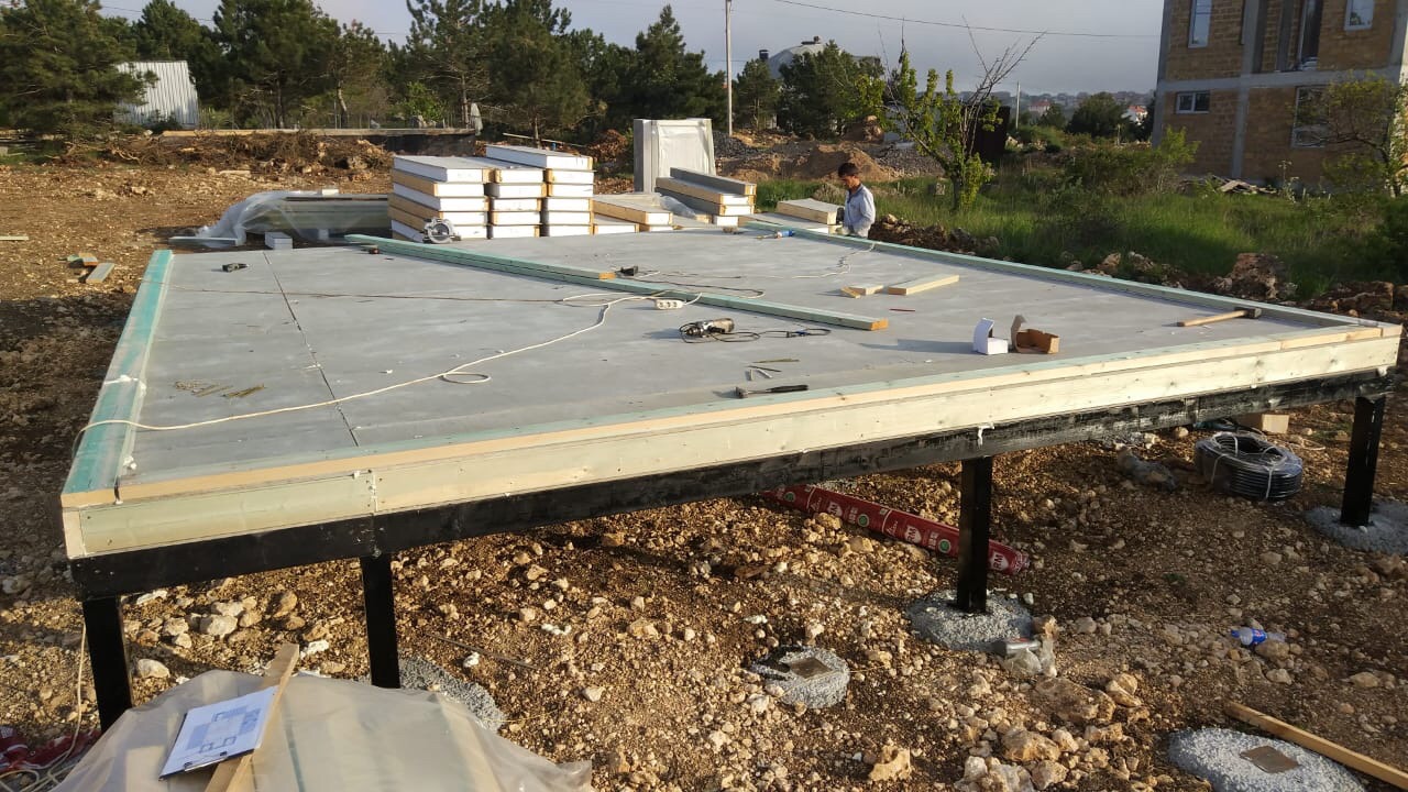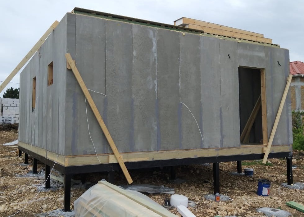 Ростверк изготовлен из калиброванного клееного бруса и защищен снаружи цементно-стружечной плитой