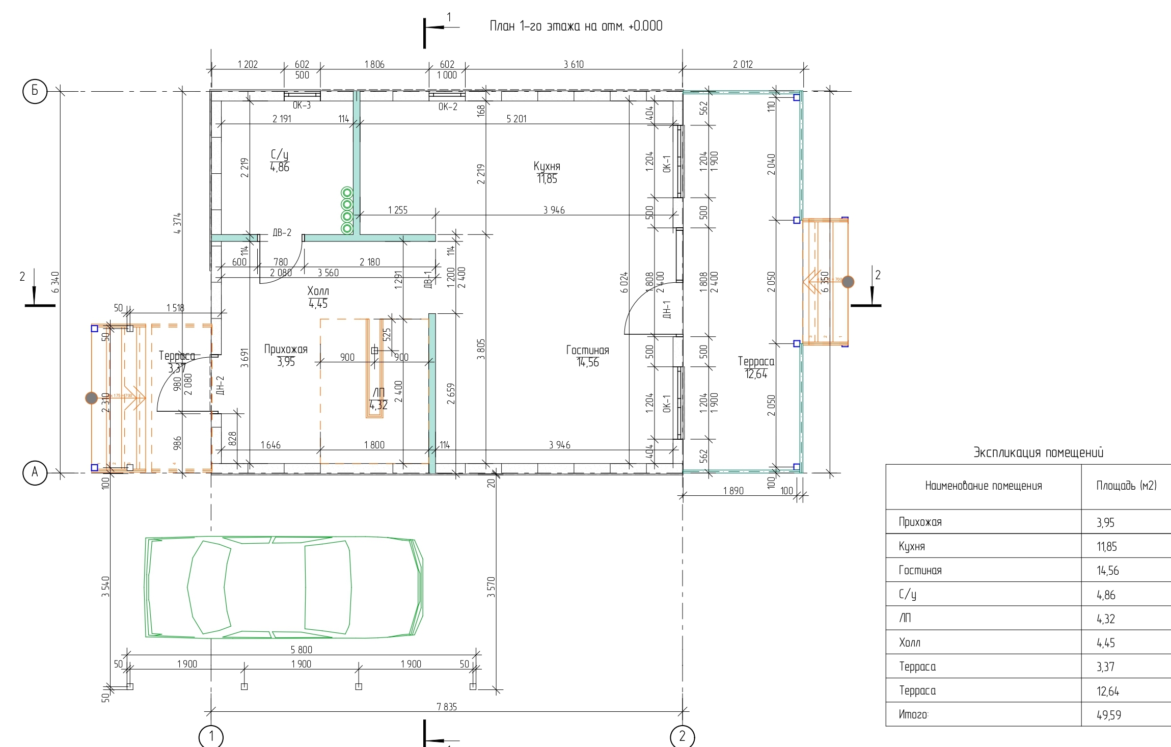 Общая площадь всех помещений – 102,22 м2