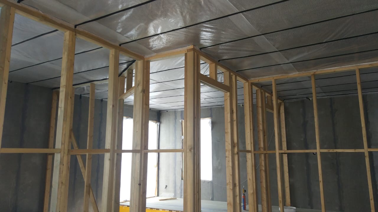 В качестве утеплителя помимо полистирола мы применяем каменную мин. плиту ISOVER. Класс горючести такого утеплителя НГ- негорюч. Данный утеплитель имеет потрясающие акустические (шумоизоляционные) характеристики!