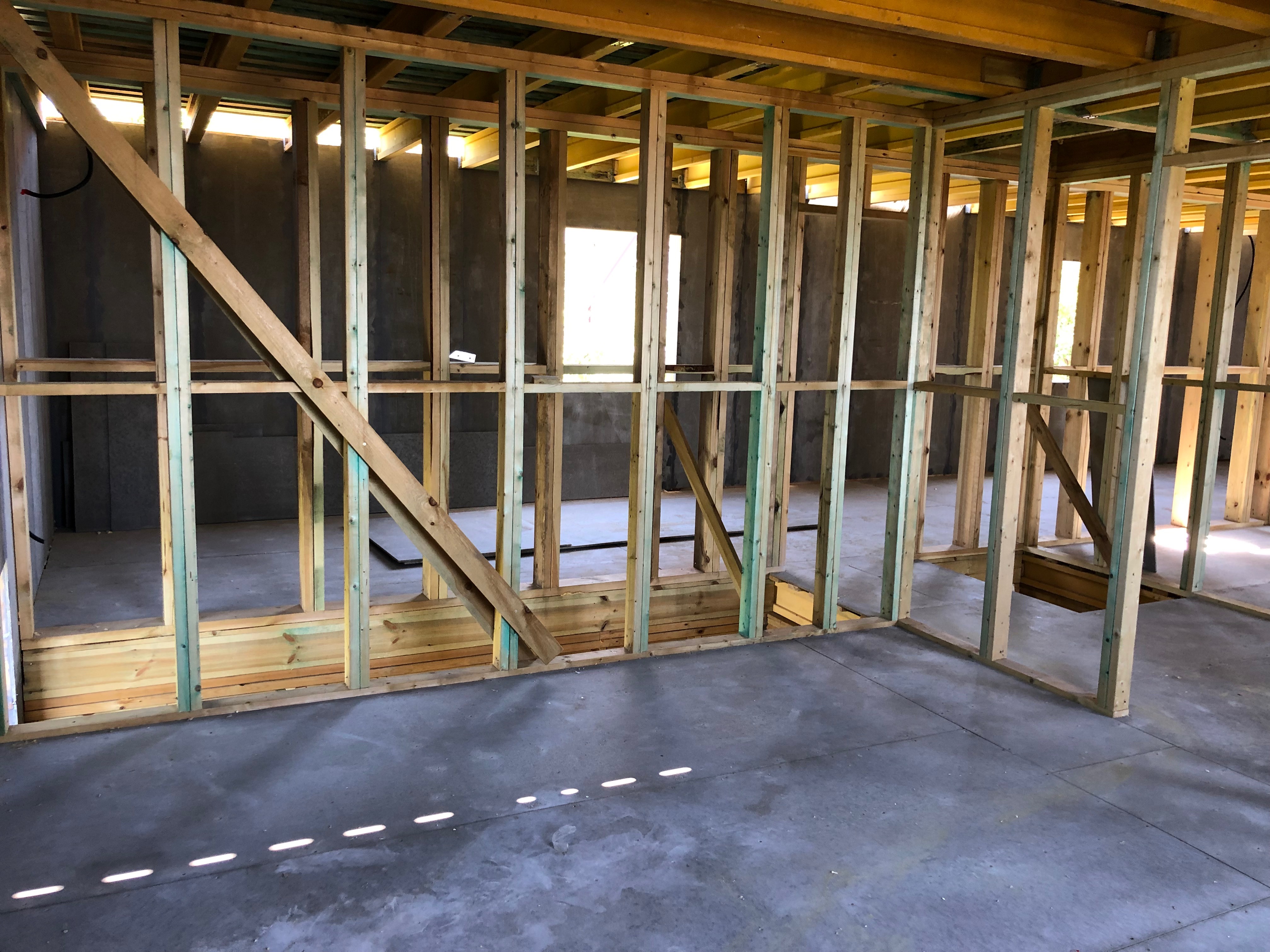 Ростверк изготовлен из калиброванного клееного бруса и защищен снаружи цементно-стружечной плитой