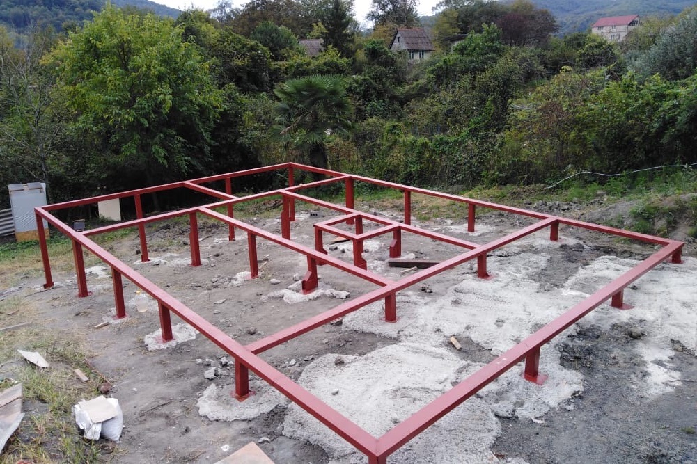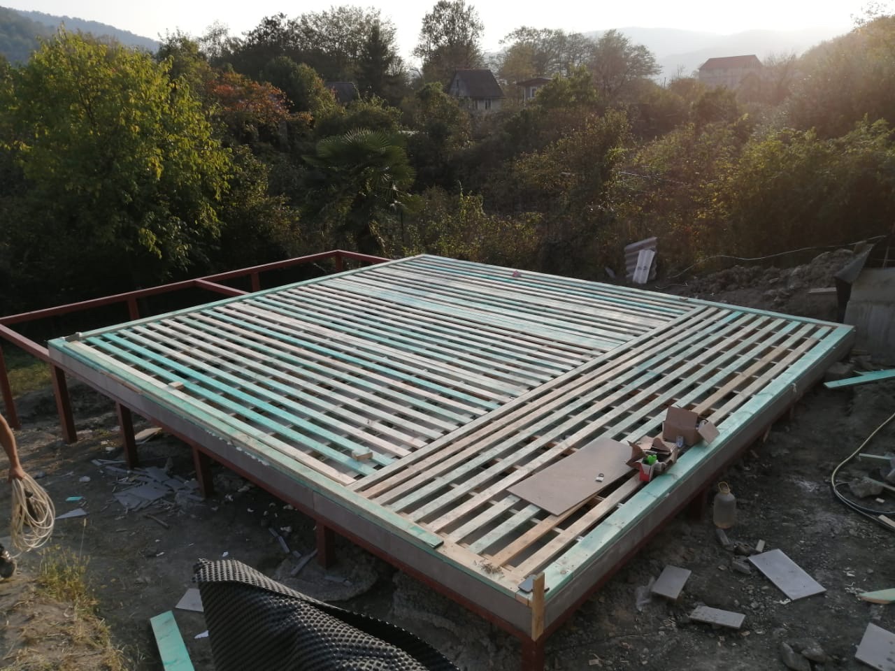 Ростверк изготовлен из калиброванного клееного бруса и защищен снаружи цементно-стружечной плитой