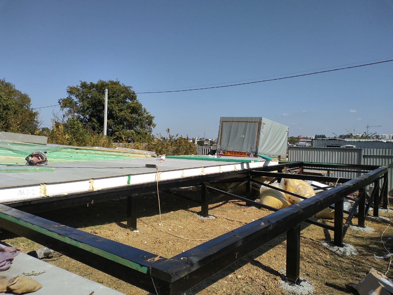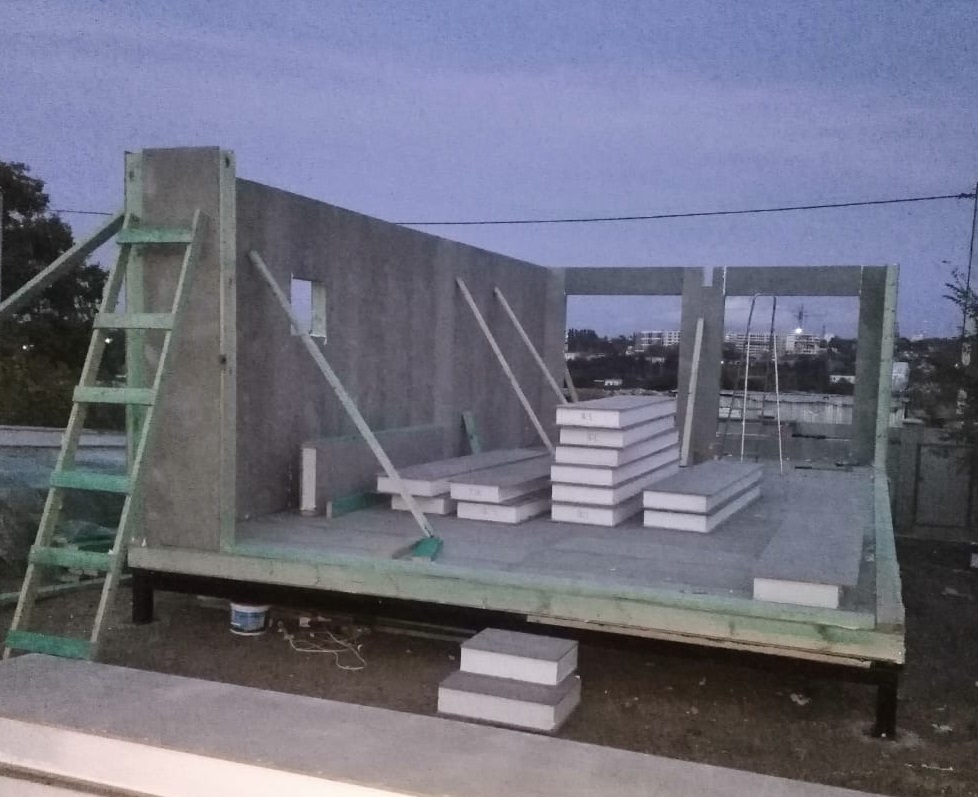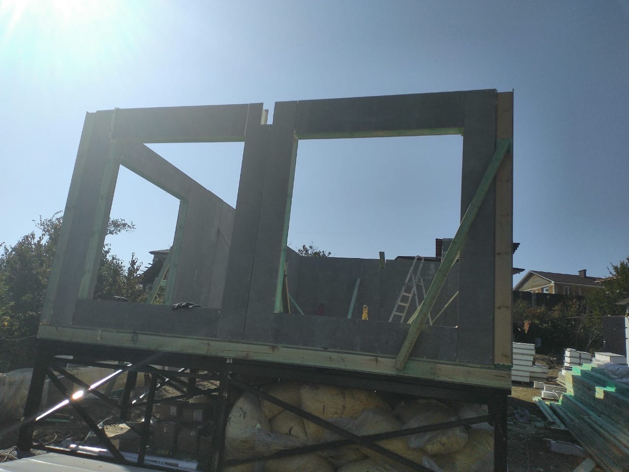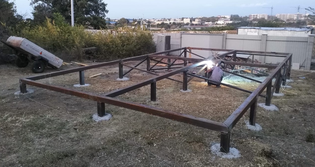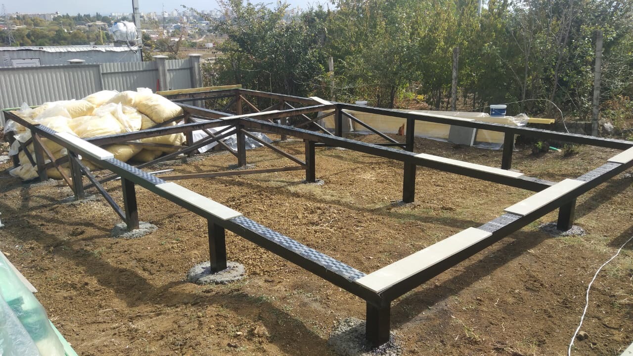 Ростверк изготовлен из калиброванного клееного бруса и защищен снаружи цементно-стружечной плитой