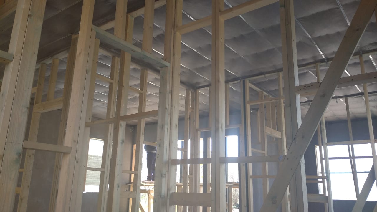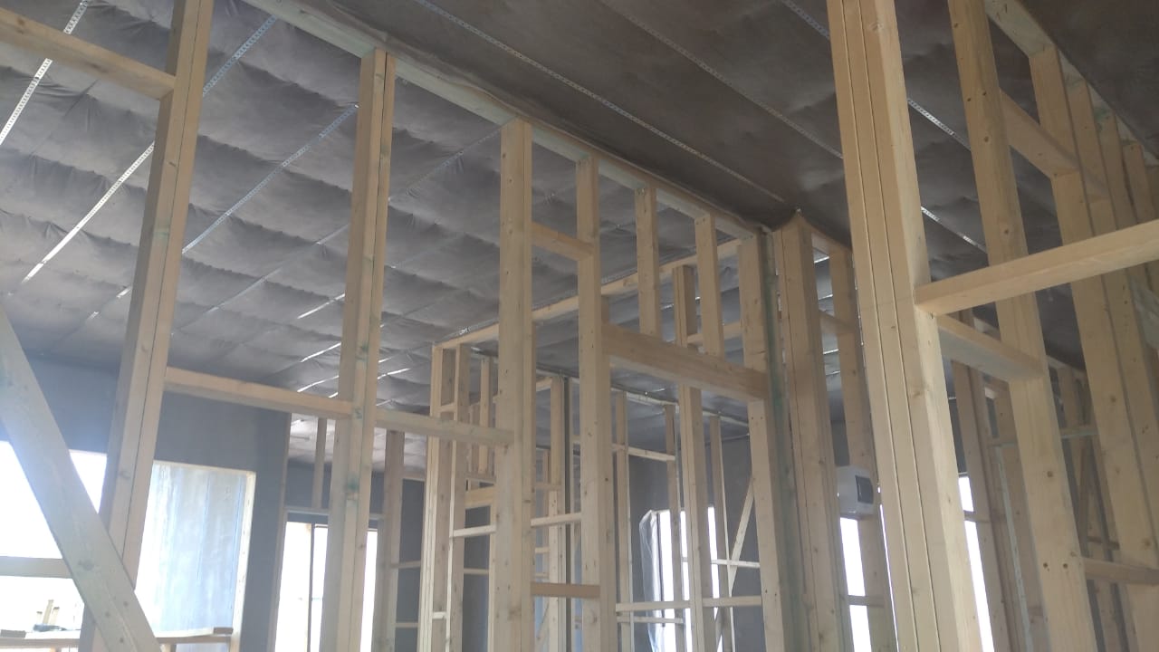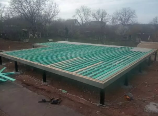Ростверк изготовлен из калиброванного клееного бруса и защищен снаружи цементно-стружечной плитой