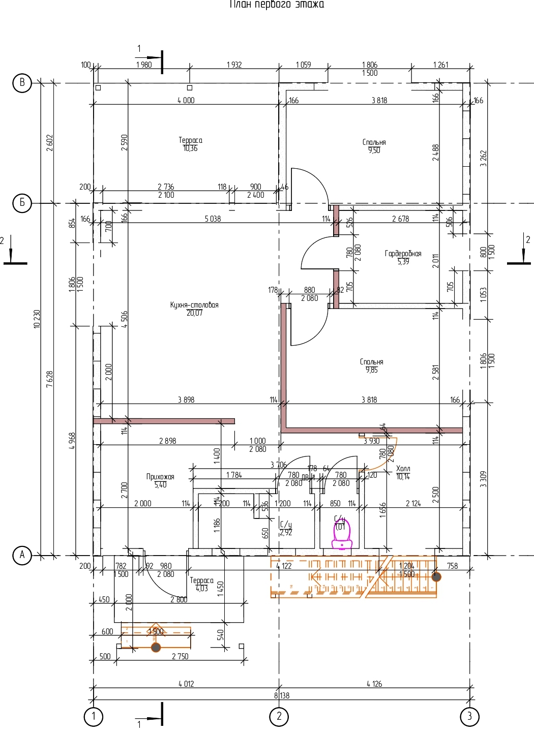 Площадь застройки – 87.28 м2