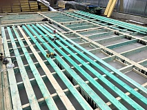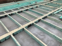 Ростверк изготовлен из калиброванного клееного бруса и защищен снаружи цементно-стружечной плитой