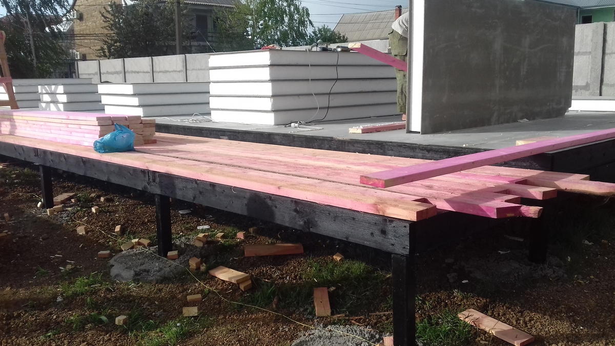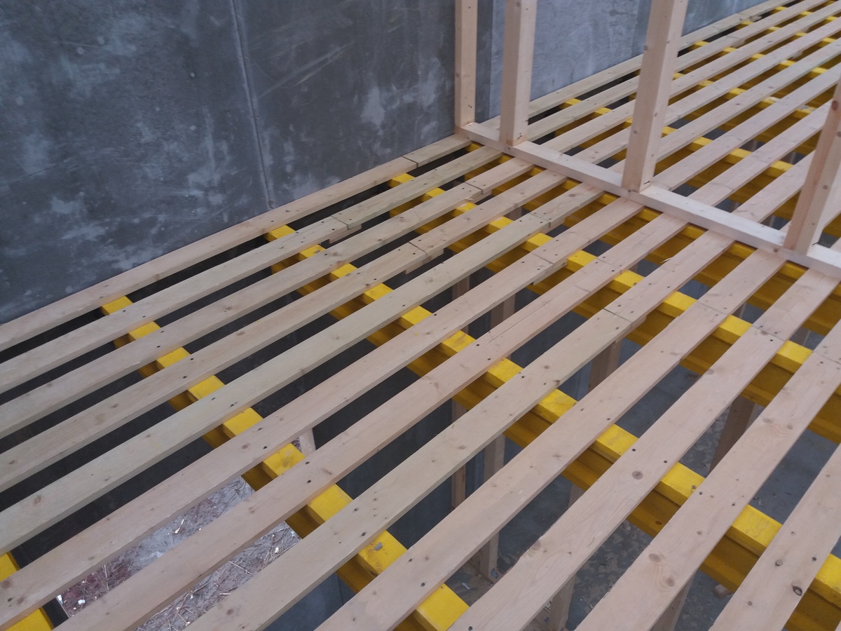 Ростверк изготовлен из калиброванного клееного бруса и защищен снаружи цементно-стружечной плитой