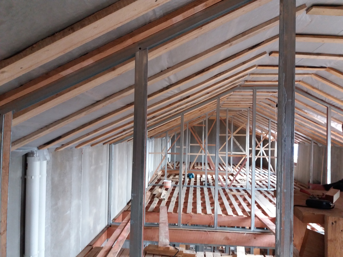 Устройство внутренних каркасных (не несущих) перегородок с монтажом листовых материалов (ГКЛ, ГСПВ, ЦСП) и устройством утеплителя.