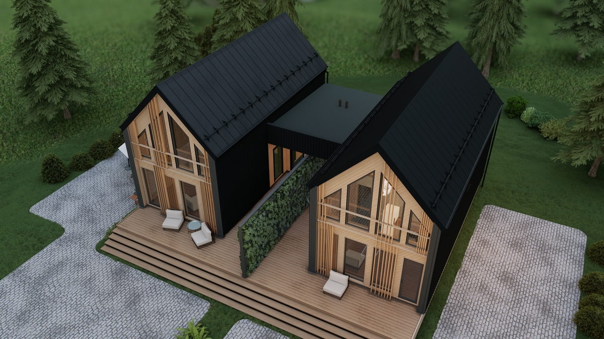 — материал готов для монтажа стен и укомплектован по проекту. В данном случае дом полностью готов к сборке стен, перегородок, а также каркаса межэтажного перекрытия.