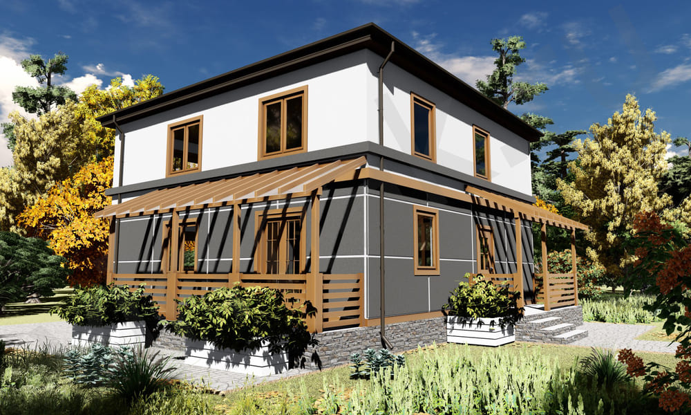— это полностью готовый теплый контур дома. В данном случае дом полностью готов к монтажу внутренних инженерных сетей, звукоизоляции
