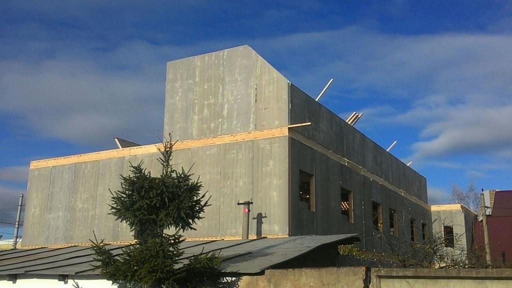 На примере административно-жилого двухэтажного строения, находящегося на территории нашего производственного комплекса, мы расскажем Вам об особенностях возведения коммерческих зданий из СИП панелей с ЦСП.