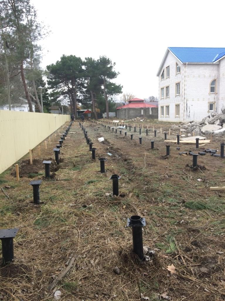 Первое — это фундамент СИП панельного строения. Мы применяем различные фундаменты в зависимости от геологии, геодезии участка, а также, от пожелания наших заказчиков. Так, в Московском регионе мы в основном применяем винтовые сваи, на юге России — буроналивные железобетонные столбы или ленточный мелко заглубленный железобетонный фундамент.